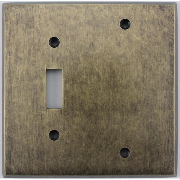 Aged Antique Brass 2 Gang Combination Switch Plate - 1 Toggle Light Switch Opening 1 Blank