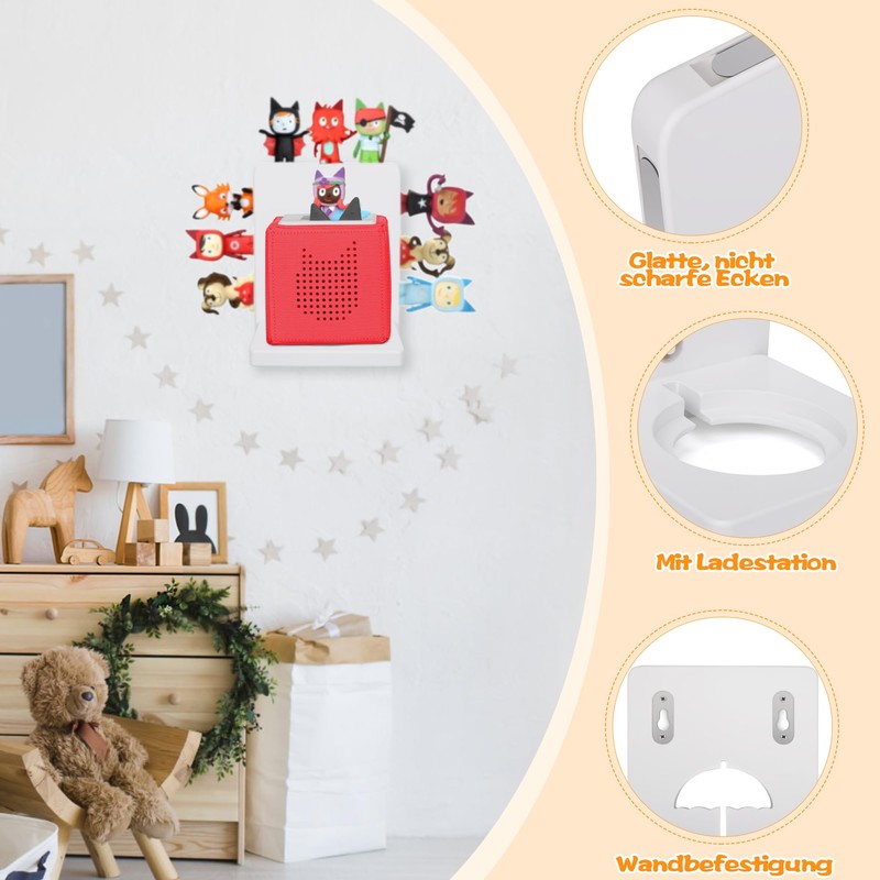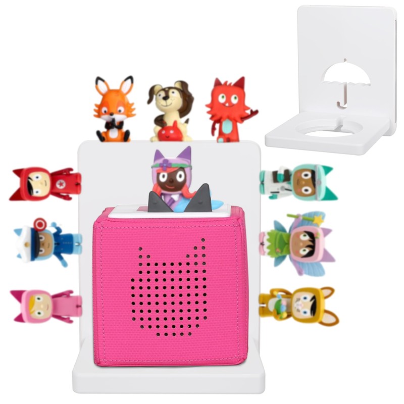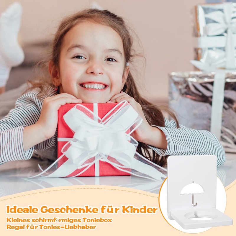 - KEEP THE ROOM TIDY Provides easy access, protection and a tidy display for your Toniebox and Tonie figures. The unique design in the shape of an umbrella adds a charming touch to the children's room and increases the aesthetics.