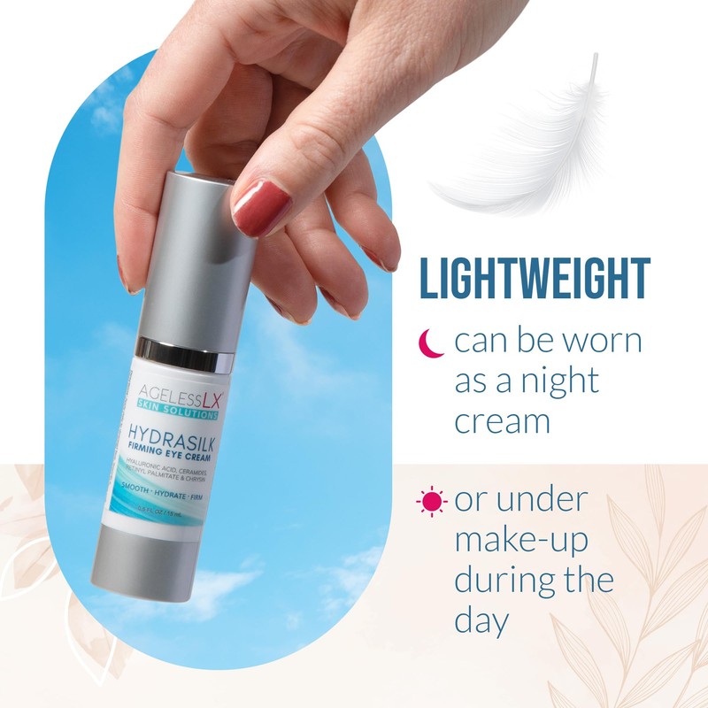 AgelessLX - Hydrasilk Eye Cream - Firming Under Eye Cream for Dark Circles and Puffiness - Hyaluronic Acid Moisturizer for Wrinkles, Fine Lines and Puffy Eye Bags - 0.5 OZ