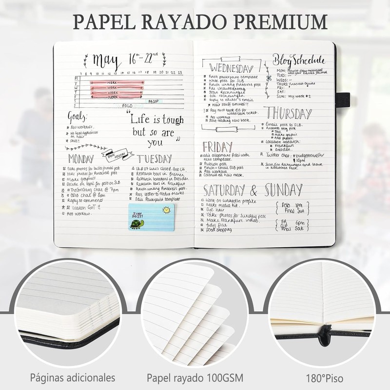 - 【PLANIFICA TUS DÍAS】La agenda tiene un tamaño A5 (21.3 x 14.8 cm), contiene un total de 192páginas (96 hojas), que es ideal para traer en tu bolso o mochila sin inconvenientes, meses duraderas que soportan un uso constante durante todo el año.