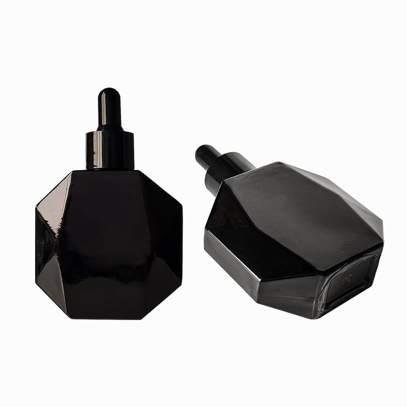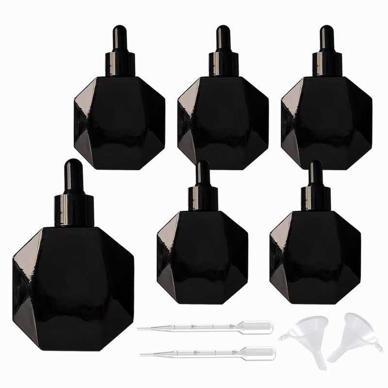 AGENIZ Black Glass Eye Dropper Bottle for Essential Oils 6 Pcs 50ml/1.7oz Diamond Glass Bottles with Dropper, for Perfume Serums Hair Oils and other liquids (-Black, 50ML/1.7OZ)