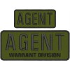 AGENT W DIVISION EMBROIDERY PATCH 4X10 and 2.5x6 HOOK ON BACK OD GREEN/BLACK