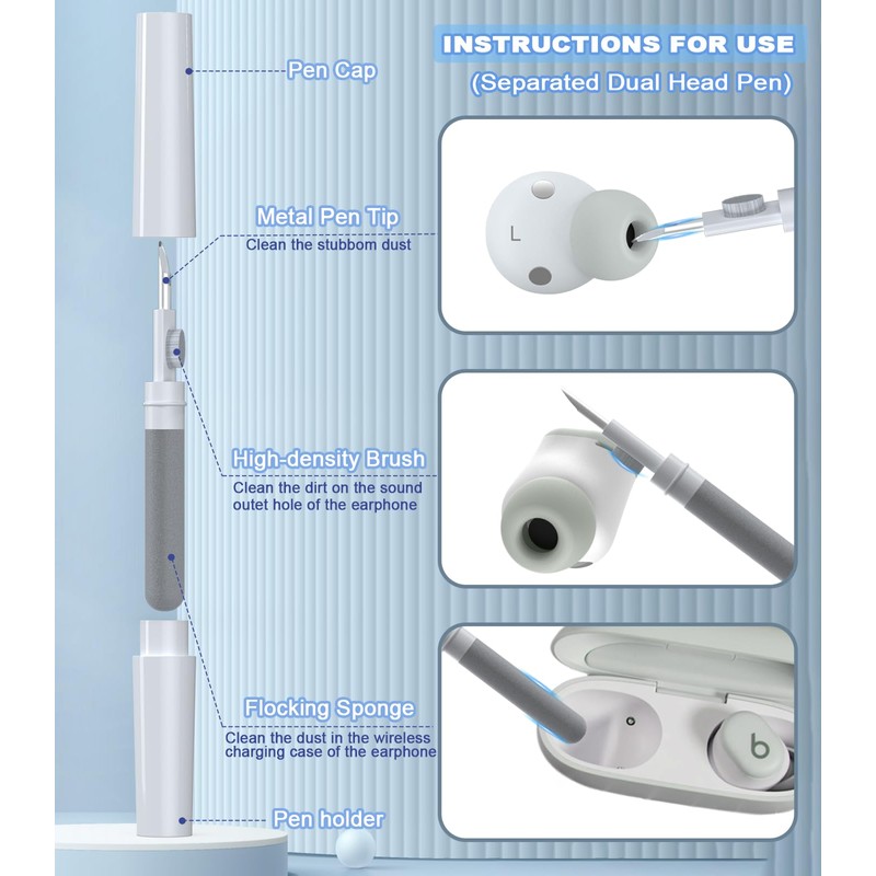 - 【Cleaning Pen-shaped Design】Convenient Double-head design,The tip of the cleaning pen, which can clean the small hole of the earplug, and deeply clean the gap and stubborn dirt. There is a soft microfiber brush under the pen tip,which can easily brush away the tiny part of the headset surface.