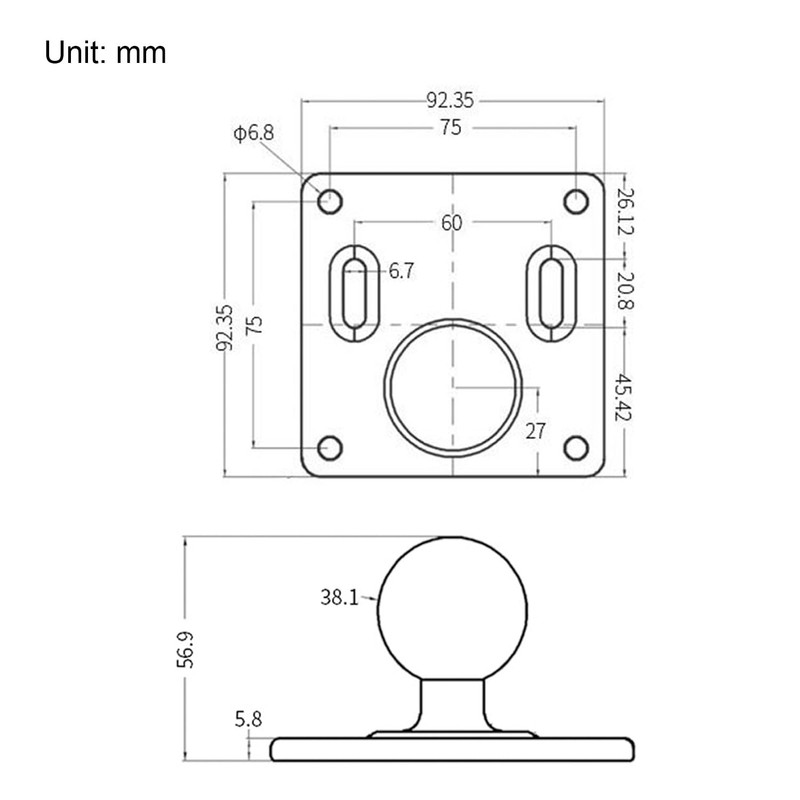 AGEofDMS VESA Mounting Plate 75 x 75 mm, 1.5 Inches, 38 mm, C-Size Ball Adapter, Aluminium Black, Compatible with RAM Mounts and 1.5 Inch Accessories