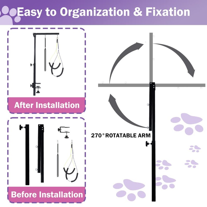 - Easy to Assemble & Foldable: Whether you are a professional groomer or an amateur, this dog grooming arms for table can be easily assembled and used. This pet grooming table arm can be easily folded to the height of less than 20", space saving for storage