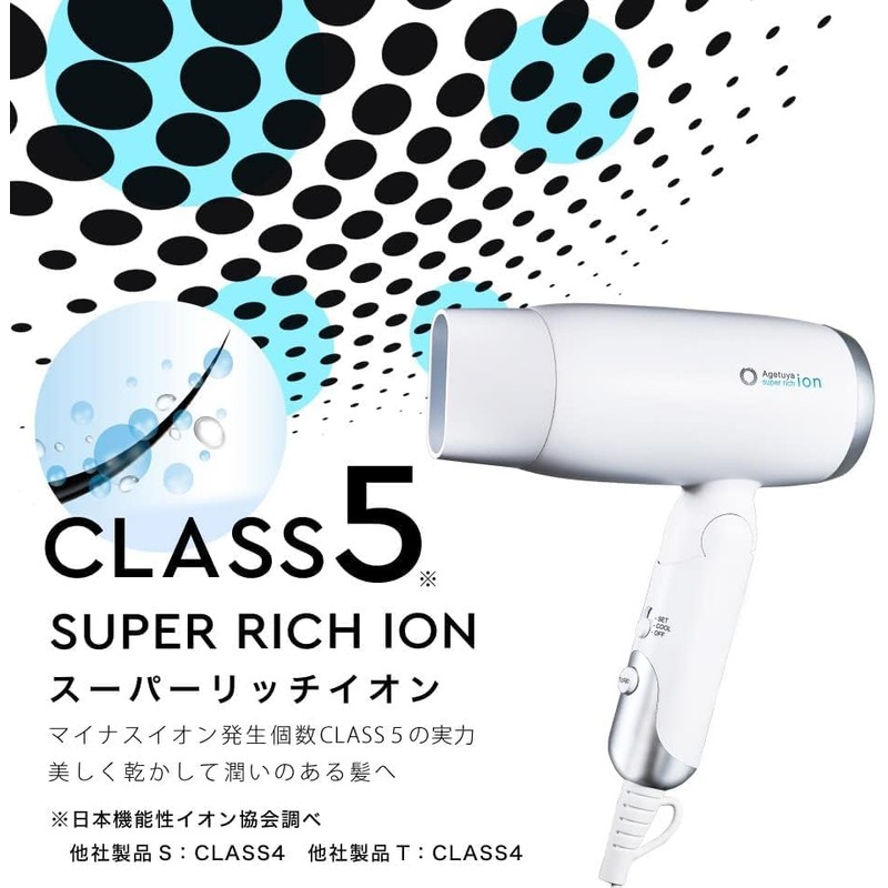 Agetsuya Super Rich Ion Hair Dryer AG-0003 Dryer, Large Airflow, Negative Ion, Quick Drying, White