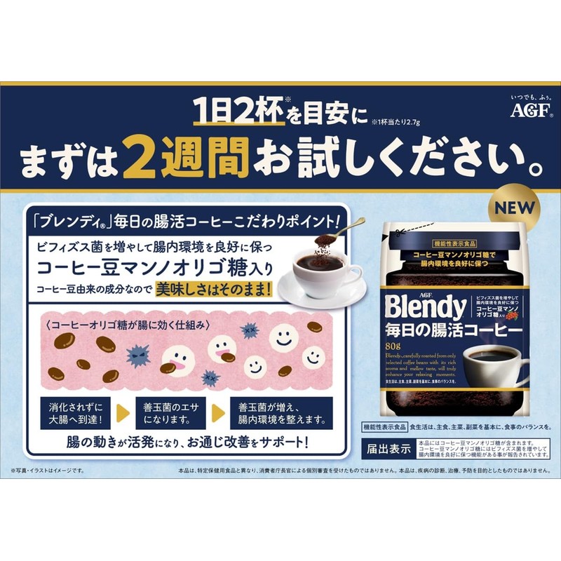 AGF ブレンディ 毎日の腸活コーヒー袋 80g 【 インスタントコーヒー 】 【 水に溶ける 】 【 詰め替え 】 【 マンノ オリゴ糖 】