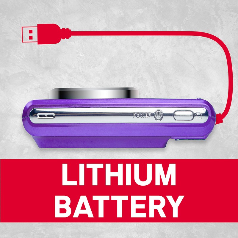 AGFA Photo Realishot DC5200 - Compact Camera, 21MP, 2.4 inch LCD Screen, 8X Digital Zoom, 720p HD Video, Lithium Battery, SD Cards, Scene Modes - Purple