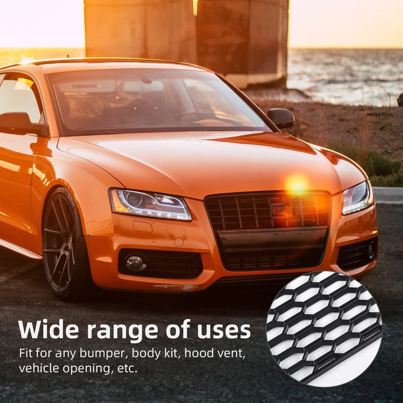 - [ WIDELY USAGE ] The vehicle grille mesh can be bent and molded into different shapes, fit for any bumper, body kit, hood vent, vehicle opening, etc.