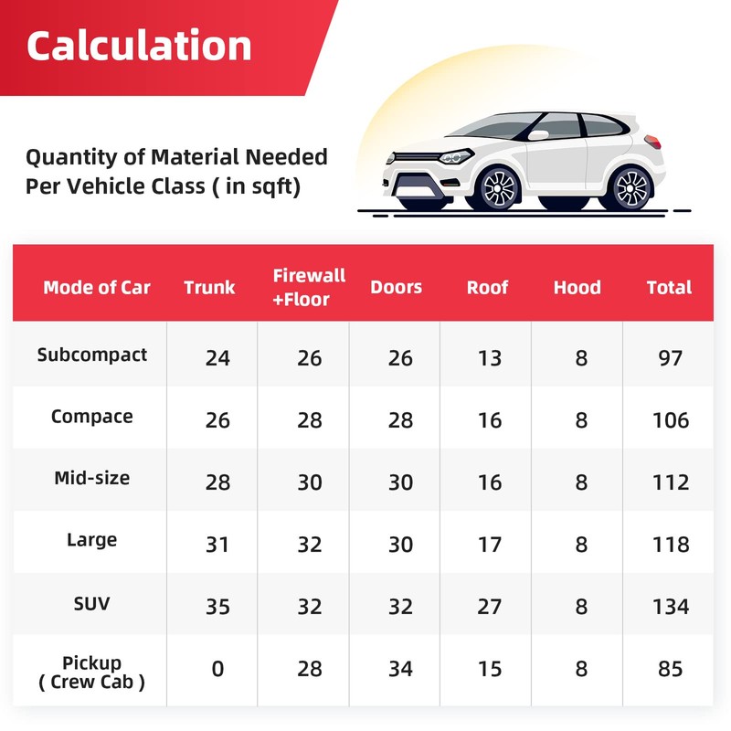 [4mm High Quality Closed Cell Foam, Provide Better Sound & Heat Insulation] Our automotive sound deadener is composed of three layers of high quality material, including 4mm high density closed cell foam, high quality back glue and back paper. It provides better noise insulation effect for your car so you can enjoy a more quiet and comfortable environment. At the same time, it effectively reduces 98% heat transfer.