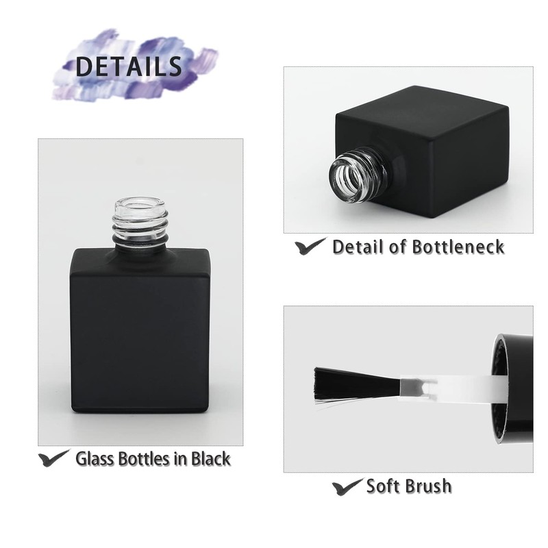 - A prueba de fugas: la botella vacía de esmalte de uñas es a prueba de fugas. Es apretado y evita fugas accidentales si la tapa del cepillo está atornillada correctamente.