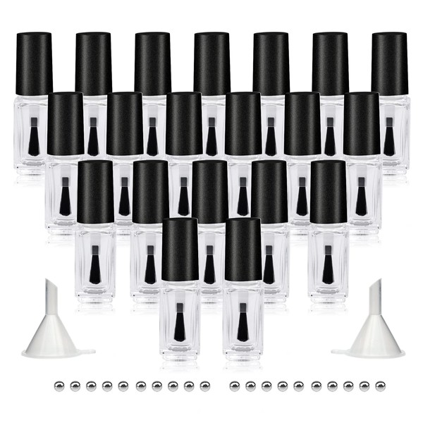 - ❀[Package Content]: 20 x 5ML Empty Nail Polish Glass Bottles with Brush, 20 x Mixing Balls, 2 x Funnel