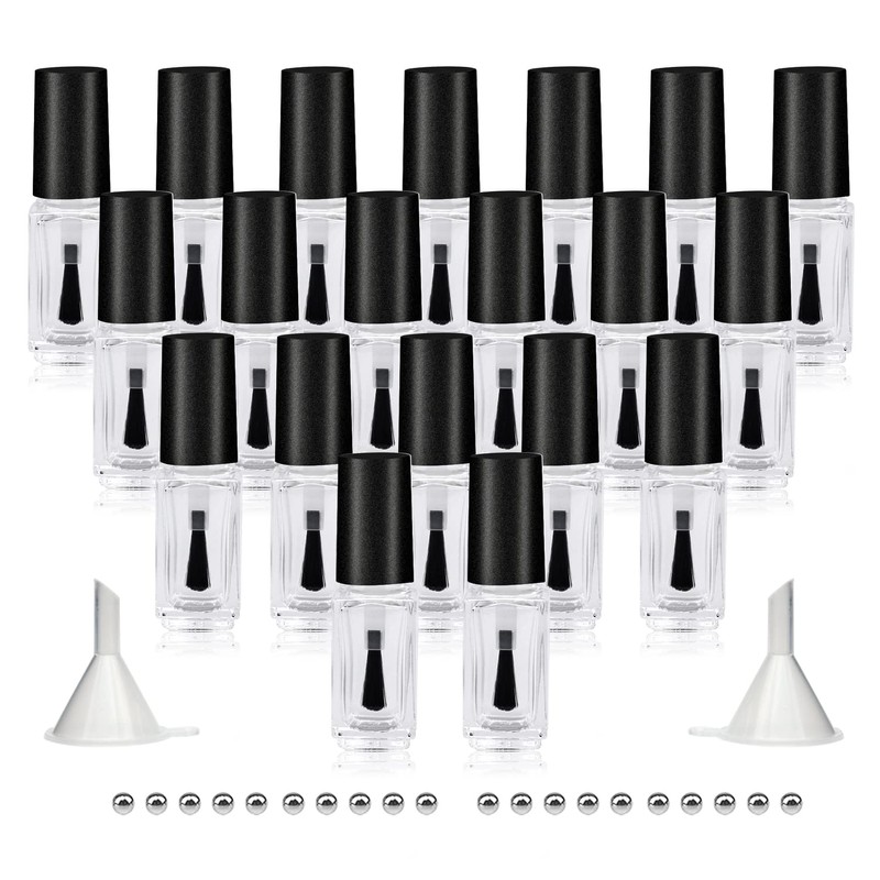- ❀[Easy to use]:These empty bottles come with soft and smooth brush, easy to use; Transparent glass bottles make it easy to see the remaining volume of cosmetics. You can easily move nail polish or other liquid to the bottle with the plastic funnel. Steel mixing balls make mixing reliable and you will get a nice consistent color result.