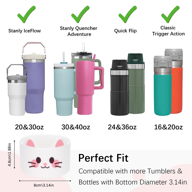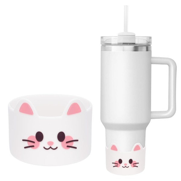 AGIFTMIND Silicone Boots for Stanly Cup 20/30/40 oz, Bottom Protector for Tumblers, Animal-Themed Boot for Stanly Cup Accessories (1P, WhiteCat)