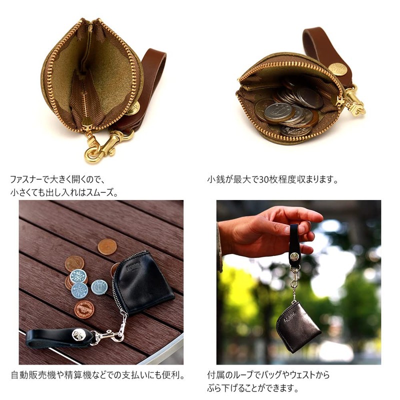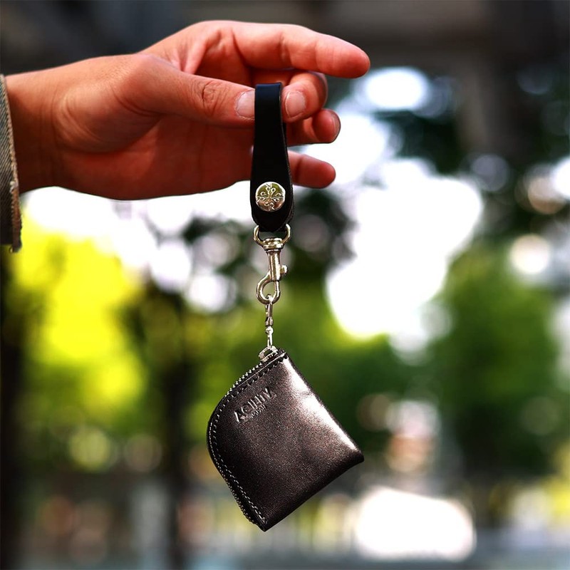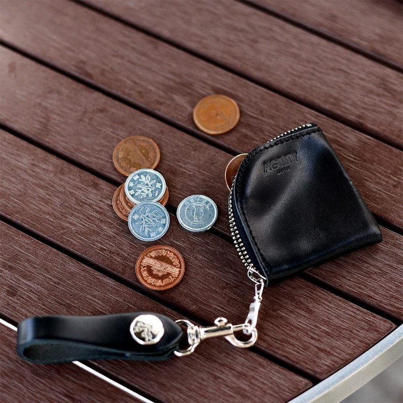 Agility affa "Argen SS" Coin Purse, L-shaped Zipper, Small, Men's, Women's, Compact, Mini, Belt Loop, Genuine Leather, Black