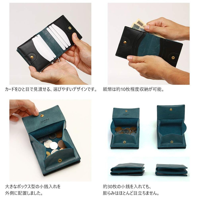 Agility affa "Calo" Wallet, Mini Wallet, Square, Compact, Folding Wallet, Small, Box-Type, Leather, Genuine Leather, Black