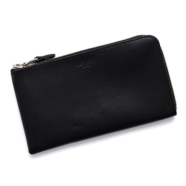 Agility affa Long Wallet, L-Shaped Zipper, Compact Wallet, Thin Wallet, Slit, 10 Pieces, Vertical, Leather, Thin, Slim, Black