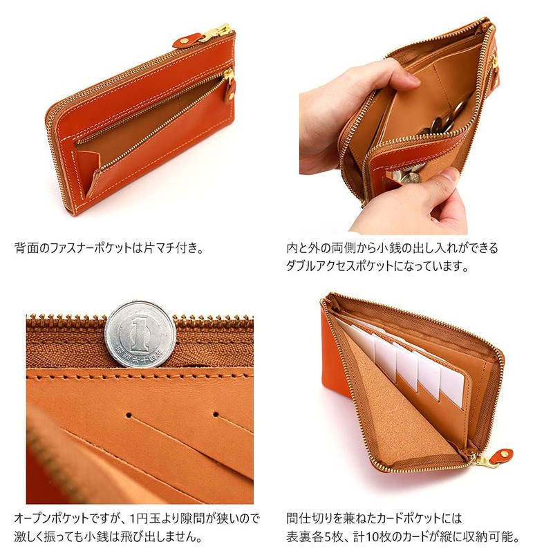 - A long wallet that neatly stores cards in a vertical arrangement with a slit structure that prevents thickness