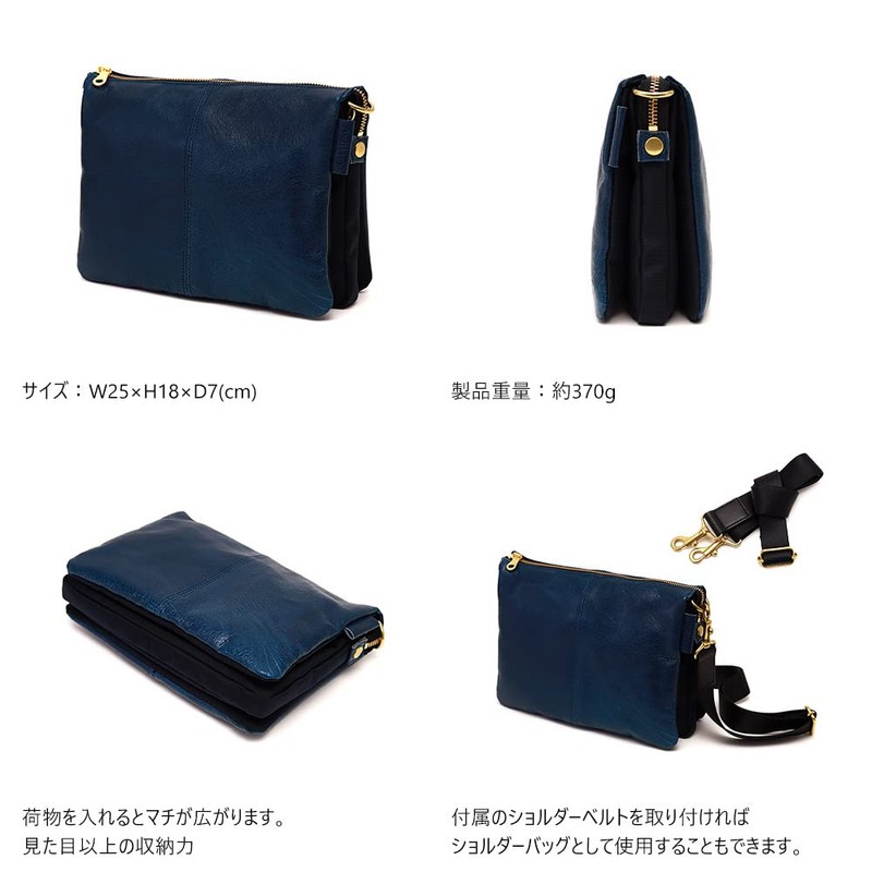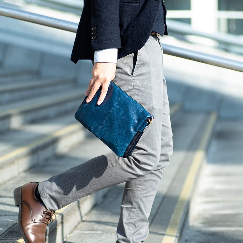 Agility affa "Pegger's Clutch" Clutch Bag, Shoulder Bag, 2-Way Pig Leather, Lightweight, Pigskin, navy