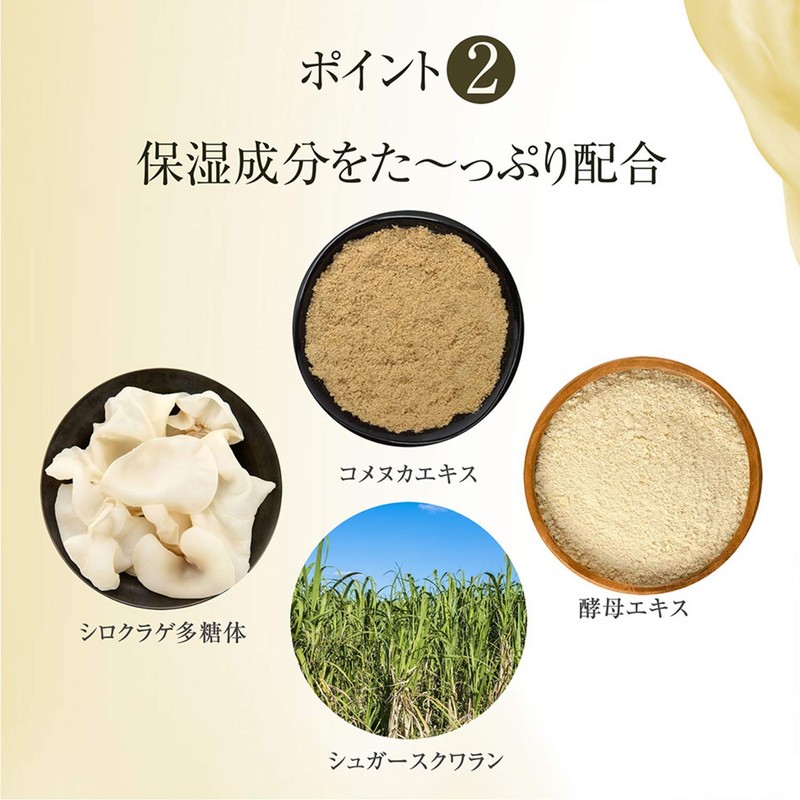 - シワ たるみ ハリ※ができない顔になる!シワ たるみ ハリ※を消す!とろみのあるテクスチャと高保湿の潤いを一度お試しいただいたお客様が、繰り返しお使いいただいており口コミで広がっております。年齢肌や乾燥によるお悩みの方々のおすすめランキング上位の商品です。(※保湿により肌に弾力をつけること)自社公式サイト調べ。