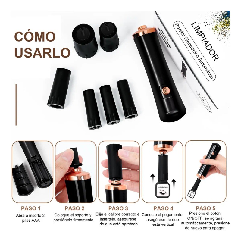 Uso: Agitar líquidos, como esmalte de uñas, pegamento de pestañas, pigmento para tatuajes, etc.