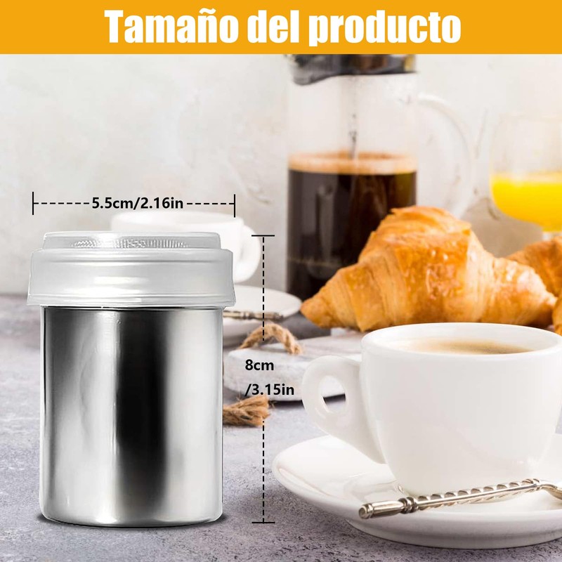 Agitadores de Azúcar en Polvo de Acero Inoxidable (Plateado, 2Pz Pequeño)