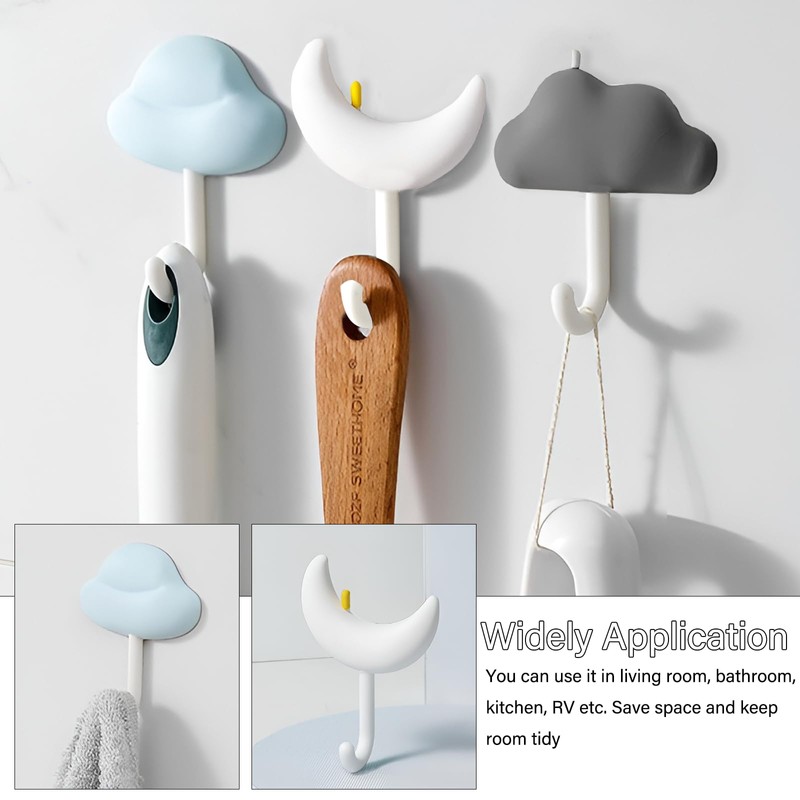 AGLOO Moon Cloud Wall Hooks Key Holder– Adhesive Wall Hooks for Keys Towels Hats Coat, Decor for Kids Room Bathroom and Entryway