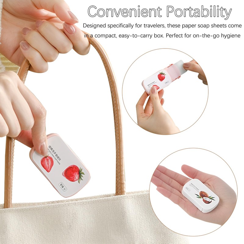 • Convenient Portability: Designed specifically for travelers, these paper soap sheets come in a compact, easy-to-carry box. Perfect for on-the-go hygiene.