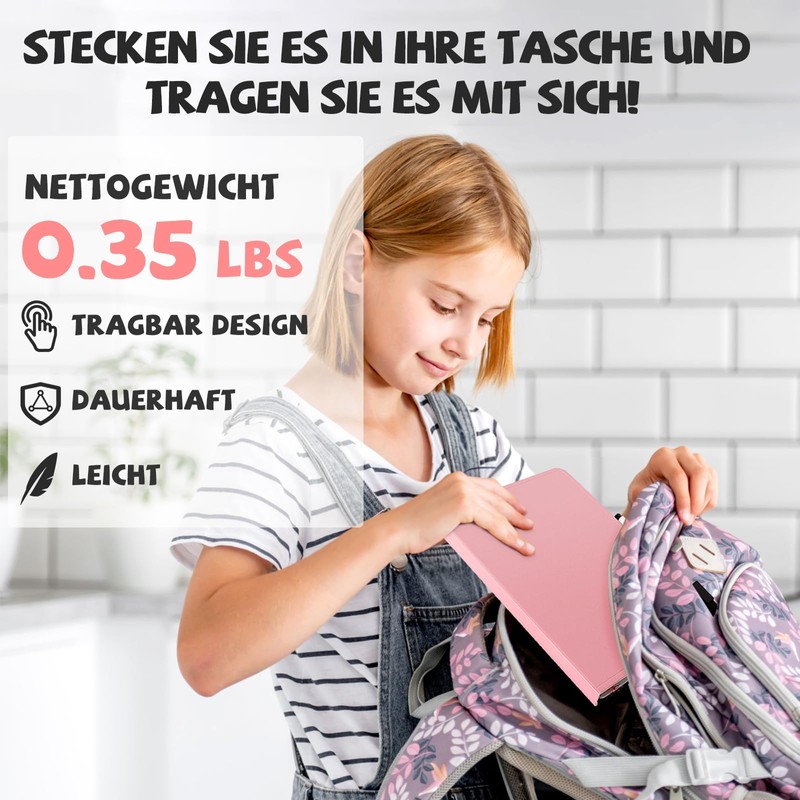 - Portable: A5 whiteboard, ultra thin and lightweight, with silicone padding on the corners and a secure curved edge design. The pen ring can hold the pen in place, and the long eraser is more effortless to use.