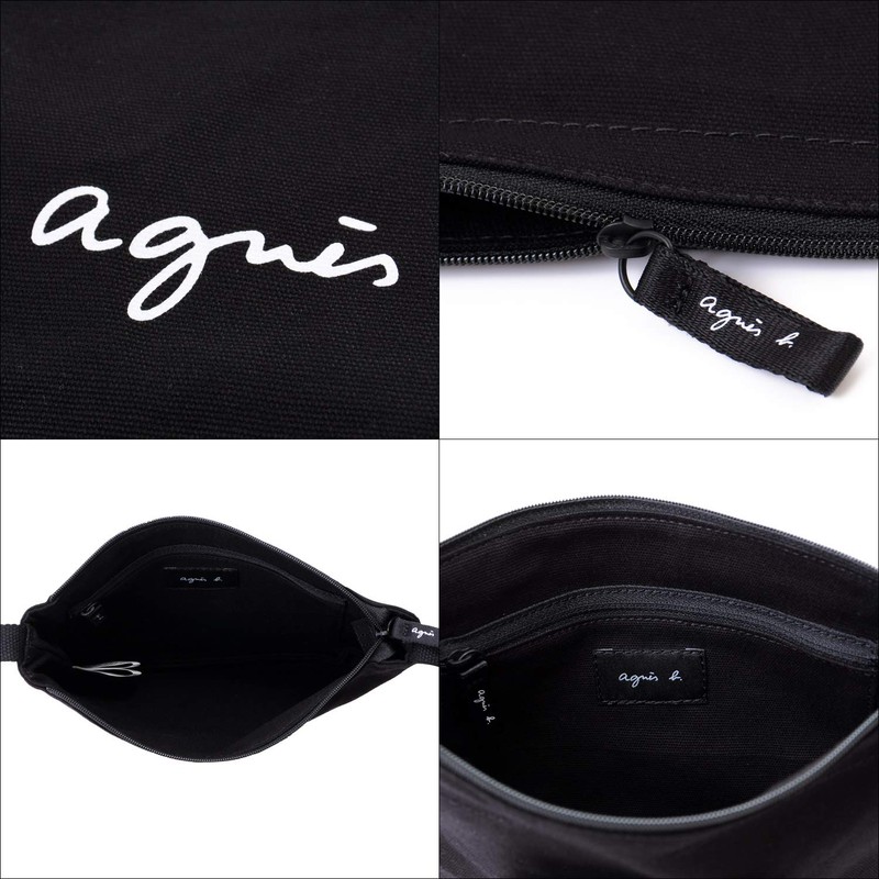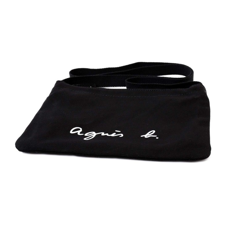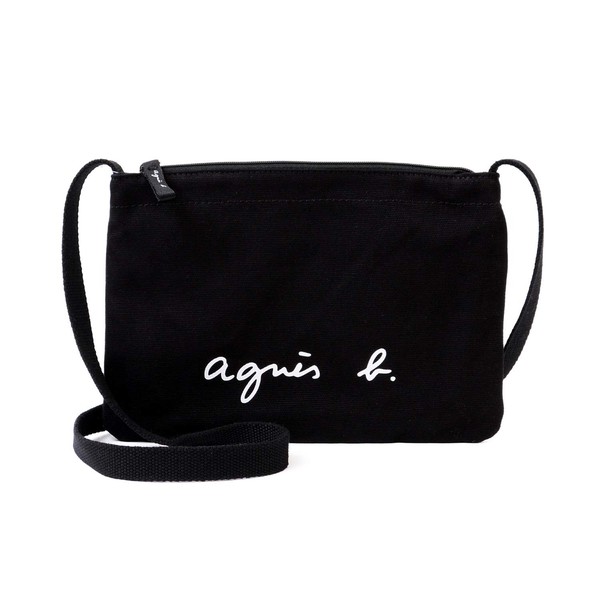 agnes b. GO03-07 Sacoche Shoulder Bag, Genuine Cotton, Canvas, Black