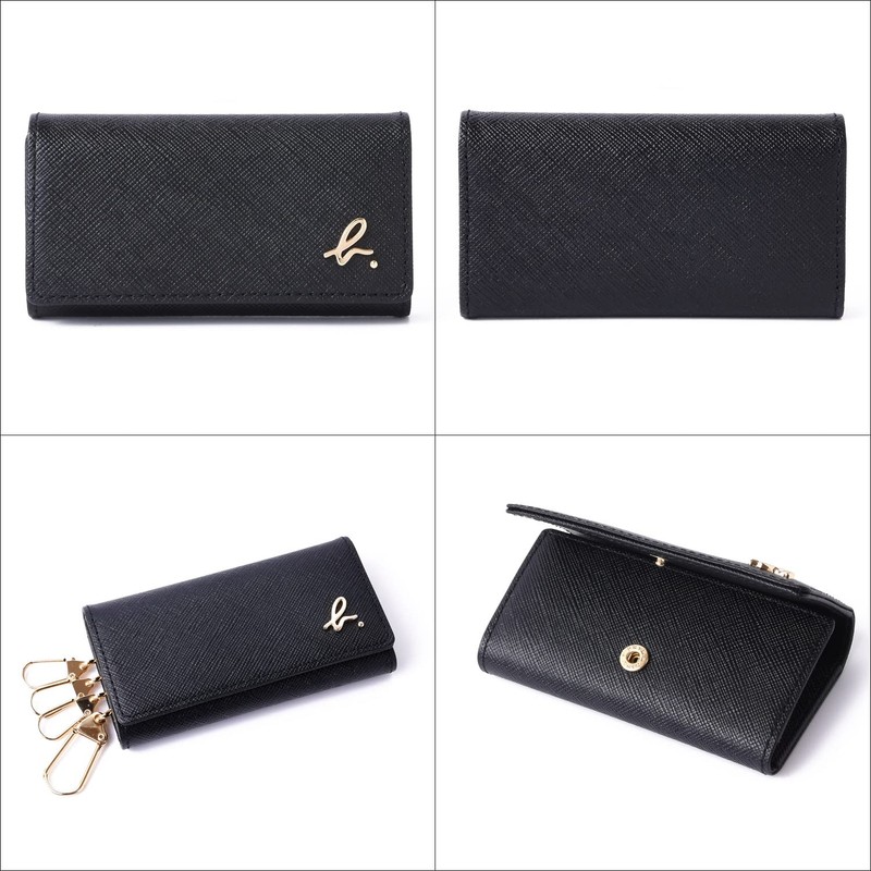 Agnes b. VOYAGE Genuine Product Key Case 4 Key Case Key Ring Cowhide Leather Logo EW13B-06 with Shop Bag (No Name Engraving, Black x Black)