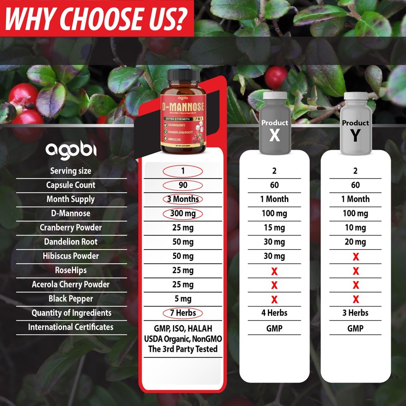 - Herbal D-Mannose Cranberry Blend Complex maintains balance with exercise and a healthy lifestyle. Discover the benefits of Agobi Dietary Supplements for safe and healthy living.