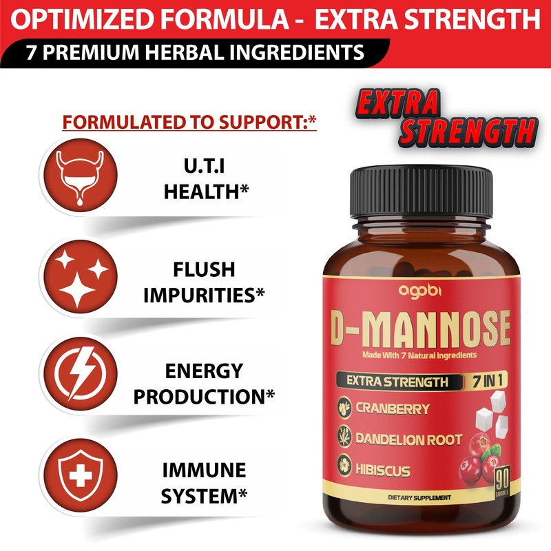 - 7in1 Extra Formula Booster with High Absorption Agobi D-Mannose Supplement; Support optimal digestion, restful mood, immune system, and energy production for men & women.