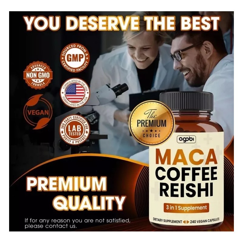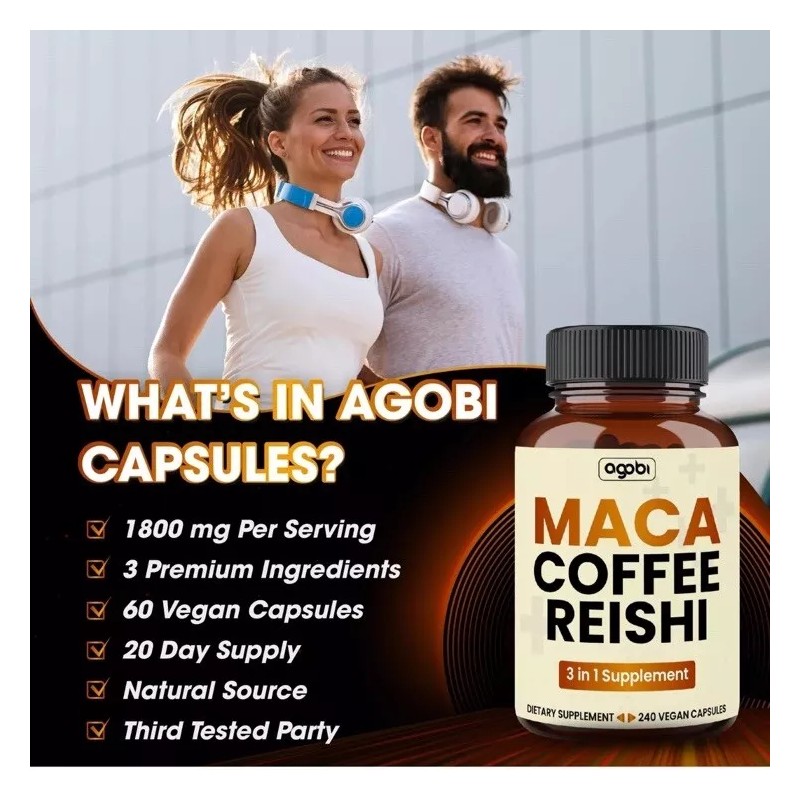 agobi Maca 1800mg with Coffee, Reishi Mushroom for Energy, Stamina, Mood Support 240 C