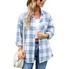 Agoeast Womens Oversized Button Down Plaid Flannel Shirts Casual Long Sleeve Checked Blouse Top(0068-Blue-S)