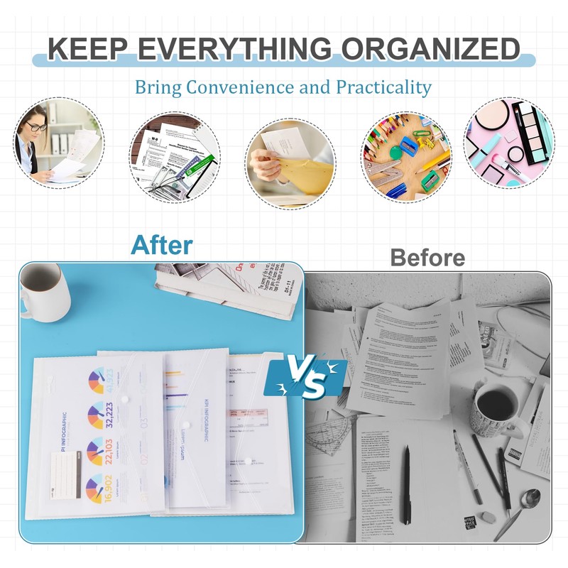 - [ Premium Quality Material ]: Our transparent file wallets are made from thick polypropylene, durable and water resistant, no odor, non-toxic. Ideal for long term storage your documents, paperwork a4, stationery and office supplies.