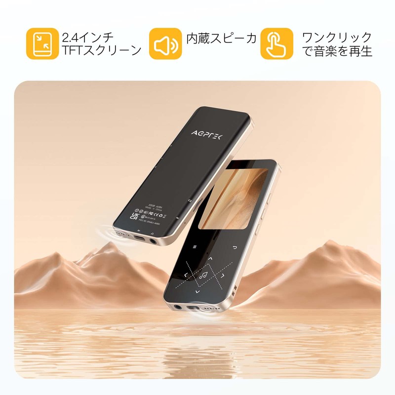 AGPTEK A09 MP3 Player, Bluetooth 5.3, Built-in, 32 GB, Large Capacity, Walkman, 2.4-inch Large Screen, Metal Frame, Stylish, Lossless Sound Quality, 48 H Music Playback Time, Music Player, Direct