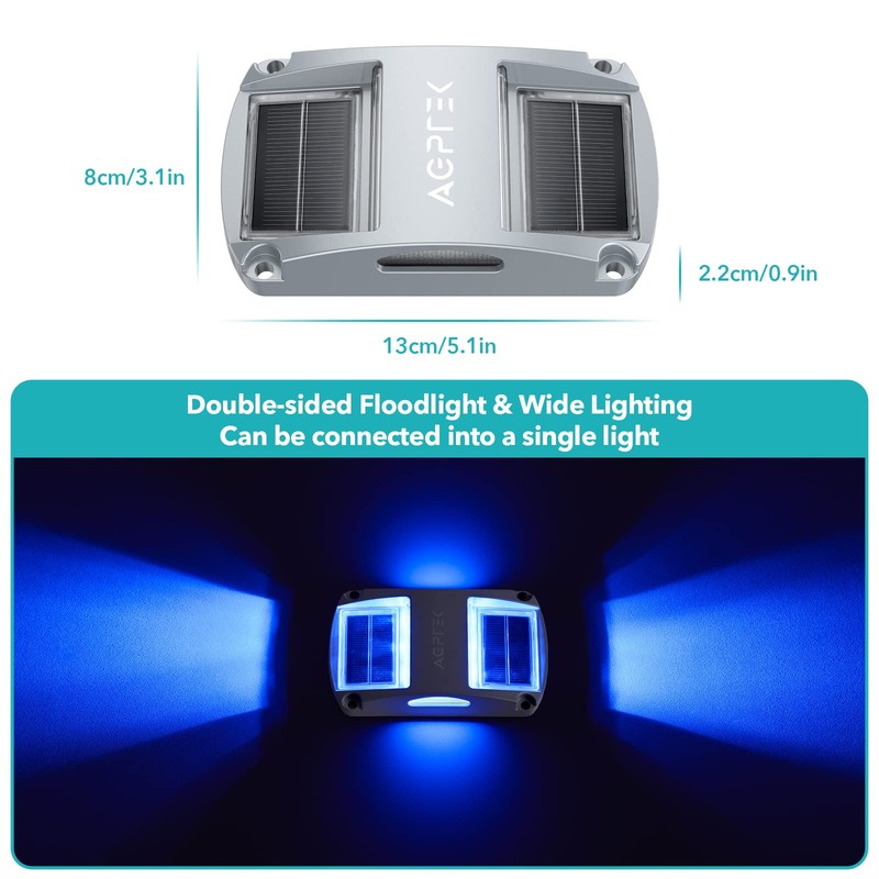 - IP67 Waterproof Marine Dock LightsWith upgraded IP67 waterproof design and a tightly sealed battery compartment, each deck light has been strictly inspected. These solar driveway marker lights can resist any terrible weather, like snow, rainstorm or daily heat. Specaily designed for deck, dock, road, path, driveway, garden, yard, stair or backyard