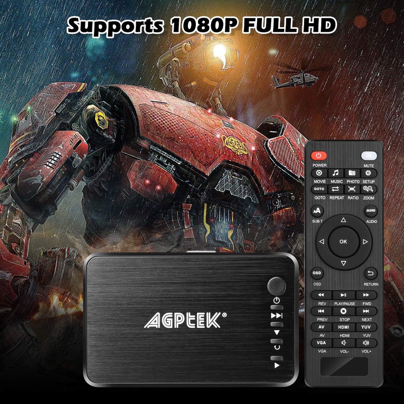 AGPTEK Black 1080P HDMI TV Media Player with HDMI YPbPr USB 2.0 SD Ports Remote Control for MP3 Avi RMVB Mpeg etc.