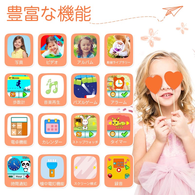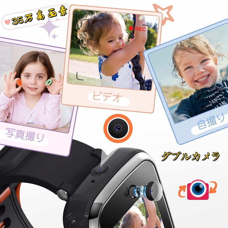 - (Capable of 350,000 pixel photography, video, recording, and voice recording) This kids' smart watch is designed for children, and comes with a front and rear camera so you can take selfies! Capture clearer and more beautiful images and videos, easily record every moment of growth. It also has a recording function so you can record school challenges, reminders, ideas and more. Leave a note with your voice so you can check and play later. It can be used as a tool to help children express and learn
