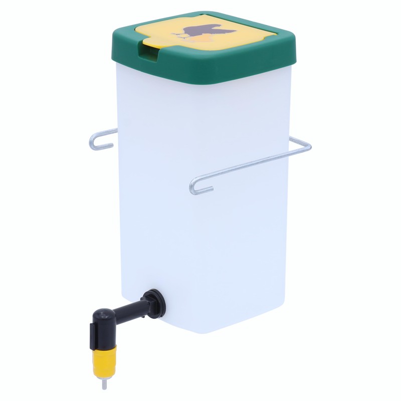 • Details: 1 x Agrarflora small animal drinking trough with bracket holder, material: plastic, metal, colour: white, green, yellow, capacity: 1 litre, dimensions: approx. 90 x 90 x 180 mm, weight: approx. 150 g.