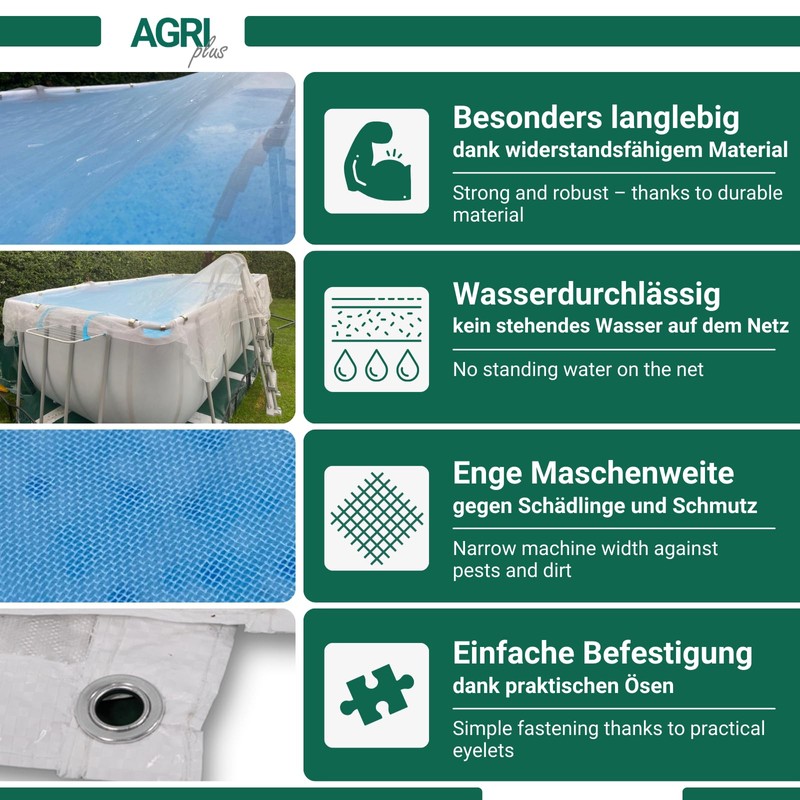 AGRI plus Pool net with eyelets, 3 x 5 m, various dimensions, tight mesh net 0.8 x 0.8 mm, cover for pool, protective net with edge reinforcement, cover net, UV-stable and water-permeable