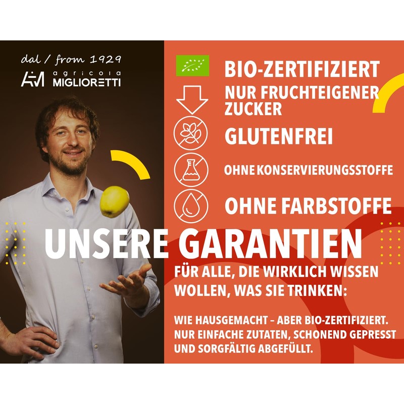 Agricola Miglioretti 200ml 100% Organic Orange Carrot and Apple Juice Cold Pressed, No Added Sugar - Natural and Refreshing Italian Product