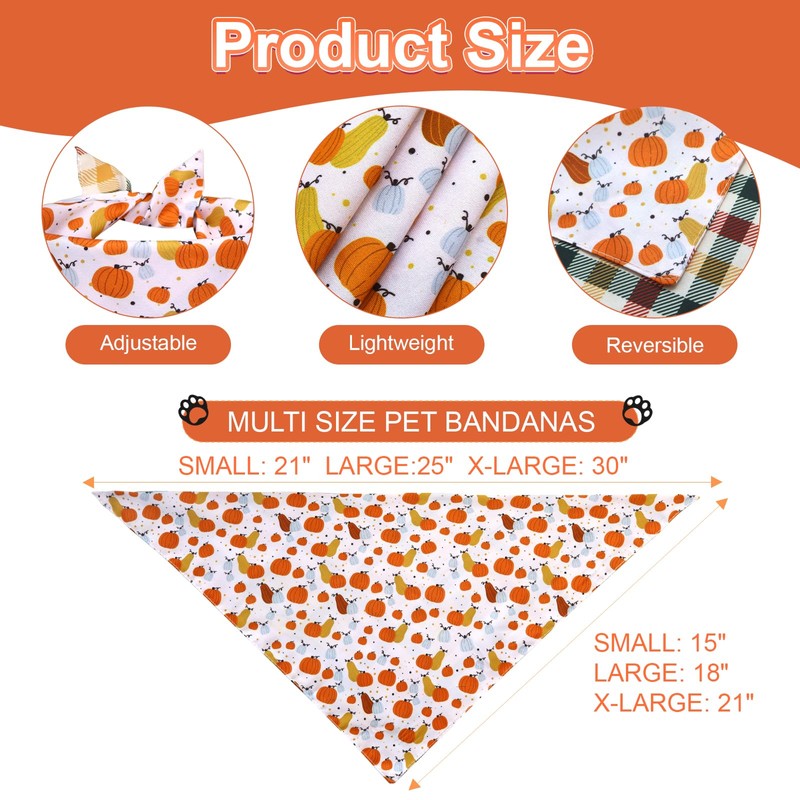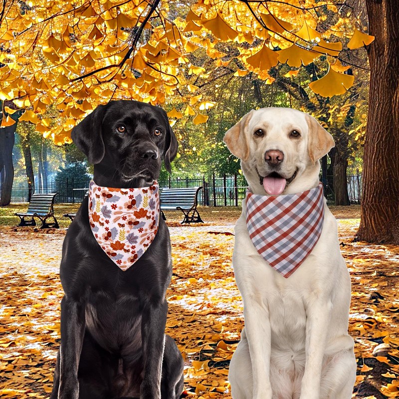 - Great Value: 3PCS fall dog bandanas have double sides, one side are various elements related to autumn, and the other are plaid, it have six fresh new looks, decor your pet with the funny bandana for all seasons and holidays.