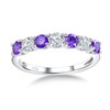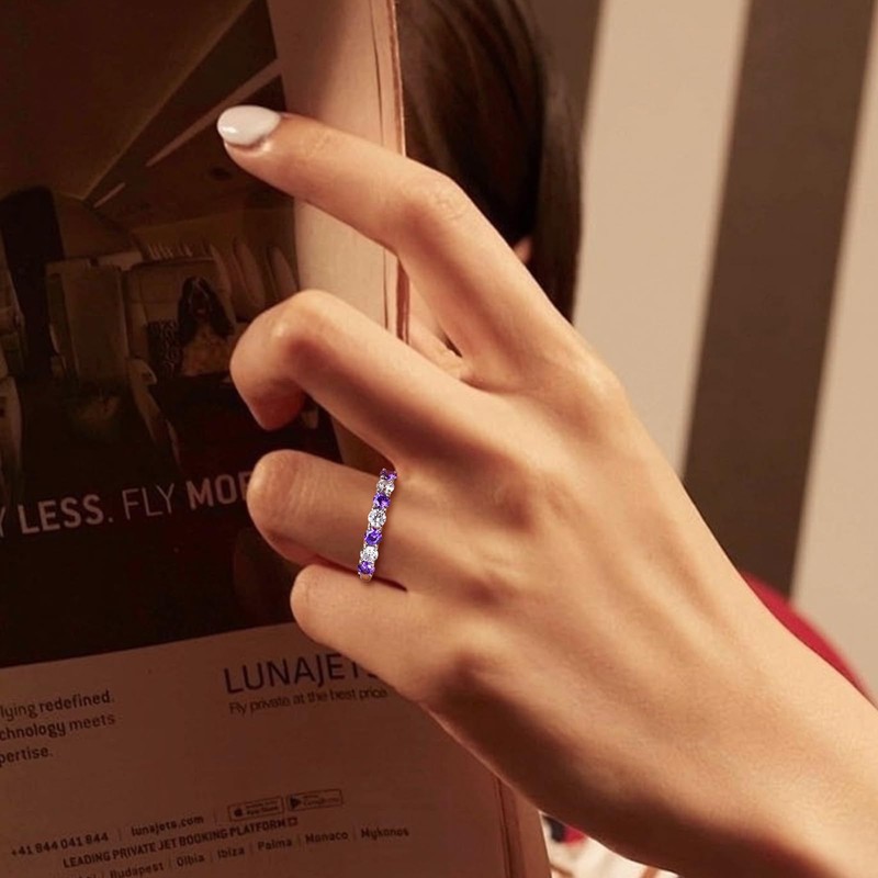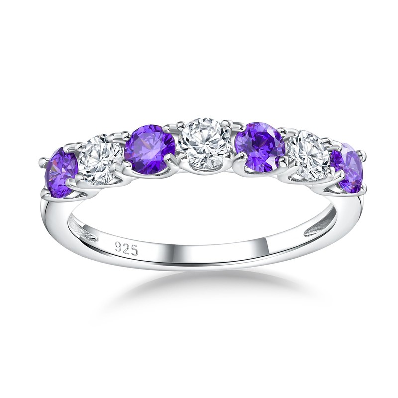 AGRULE 7 Stone Half Eternity Band Ring Stackable Wedding Anniversary Ring Sterling Silver Cubic Zirconia Inlaid Amethyst Ring for Women, Size 7