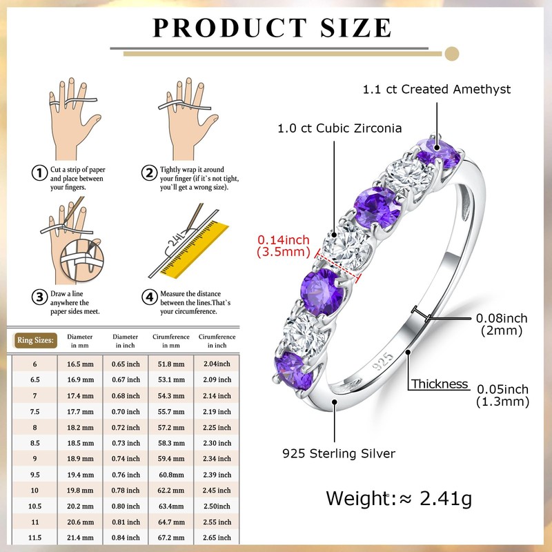 - 2.4 Cttw February Birthstone Ring : created vibrant purple gemstone ring, stunning and classic design, always in trend and nice jewelry gift for loved one.