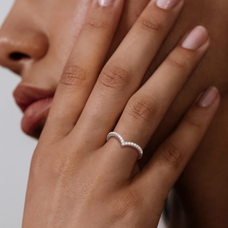 - Stackable V-Shaped Wedding Band Ring for Women : polished finish and comfort fit, aesthetic chic style band ring for women.