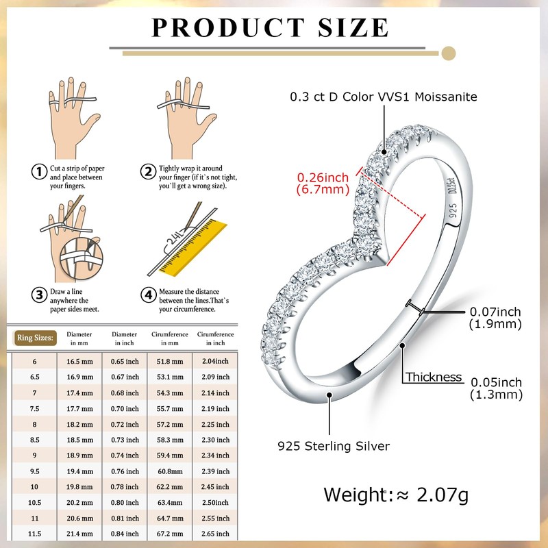 - Moissanite rings for women : vvs clarity, d color moissanite stones inlaid on the top band of the ring, stunning and shiny makes your finger looks more beautiful.