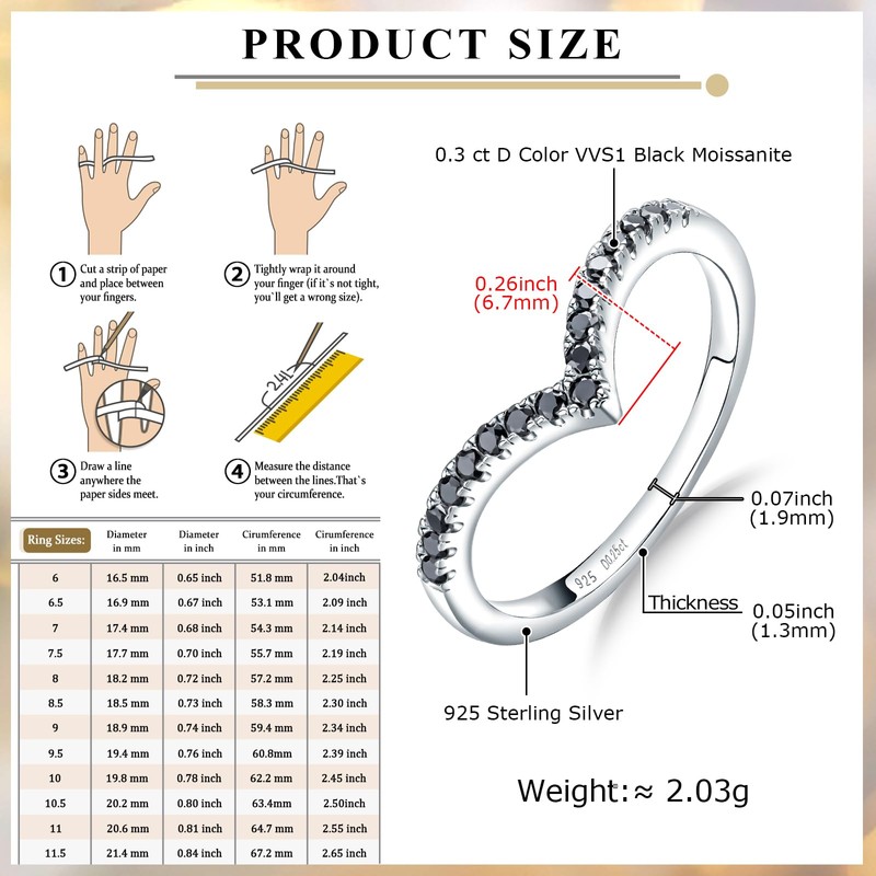 - Black Moissanite rings for women : vvs clarity, d color moissanite stones inlaid on the top band of the ring, 0.3 carat gemstone ring stunning and shiny makes your finger looks more beautiful.
