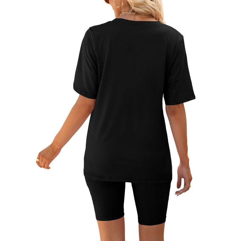 AGSEEM Summer Outfits For women 2024 Trendy Short Sleeve V Neck Two Piece Set Black M